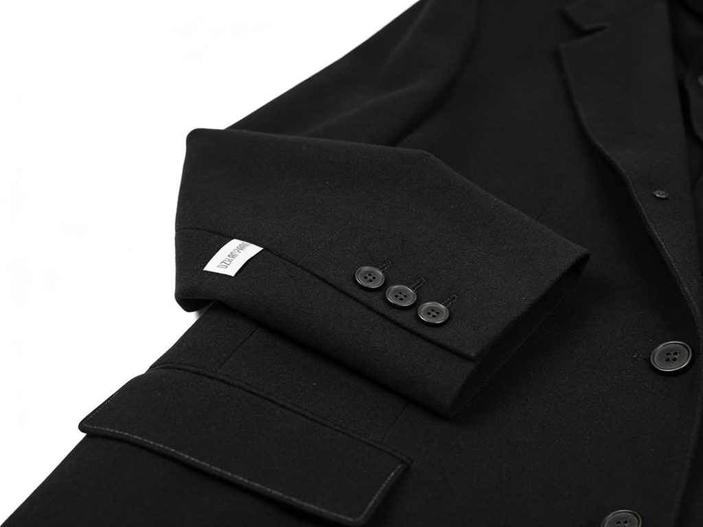 The front placket features neat stitching with a 3mm uniform stitch density, ensuring a smooth closure and consistent appearance across all pieces. We use matte metal or horn buttons in the same color as the coat, adding a subtle, high-end touch without being overly flashy.